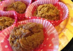 4 eggs 1- 15 ounce can pumpkin puree1/4 cup coconut oil 1 tablespoon vanilla extract 1 tablespoon pumpkin pie spice 1 teaspoon baking soda 1/2 teaspoon sea salt 5 Medjool dates 1 tablespoon pure maple syrup (optional) 3 cups blanched almond flour 1/2 cup dried cranberries (optional) In a blender or food processor, add all ingredients except the blanched almond flour and dried cranberries (if using).  Pulse until very well combined. Stir in blanched almond flour and dried cranberries (if {Read More}